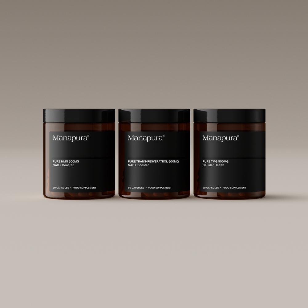 A premium, clinically-minded stack for those building a disciplined longevity protocol, containing NMN, TMG and Trans-Resveratrol.